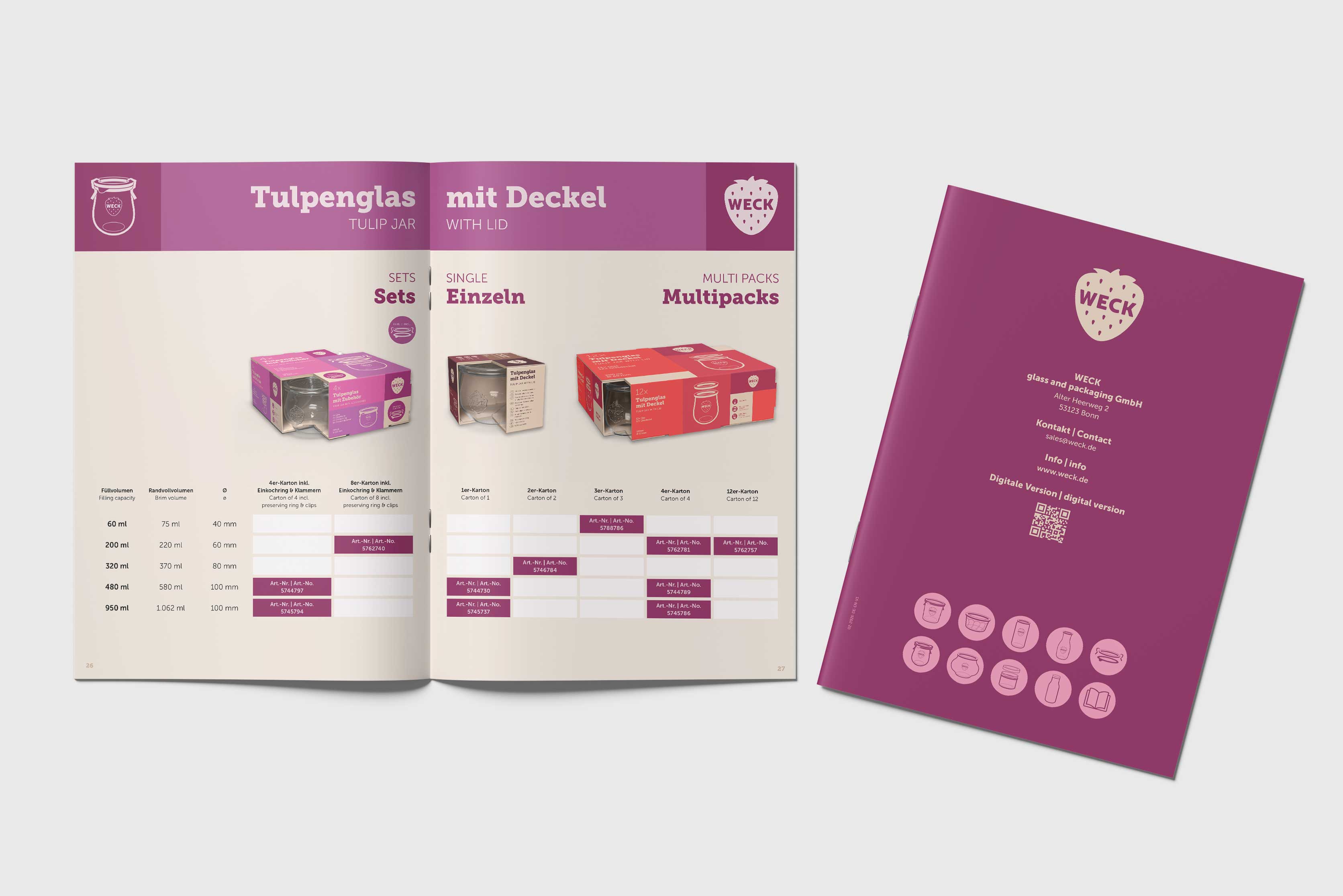 Für WECK haben wir Print so umgesetzt, dass er im Vertrieb und am Regal sofort wirkt: mehrsprachige, produktbezogene Salesfolder – vom HoReCa-Setup über Einkochautomaten bis zum Retail-Portfolio. Klar aufgebaut, schnell scanbar, mit Argumenten, die sitzen.